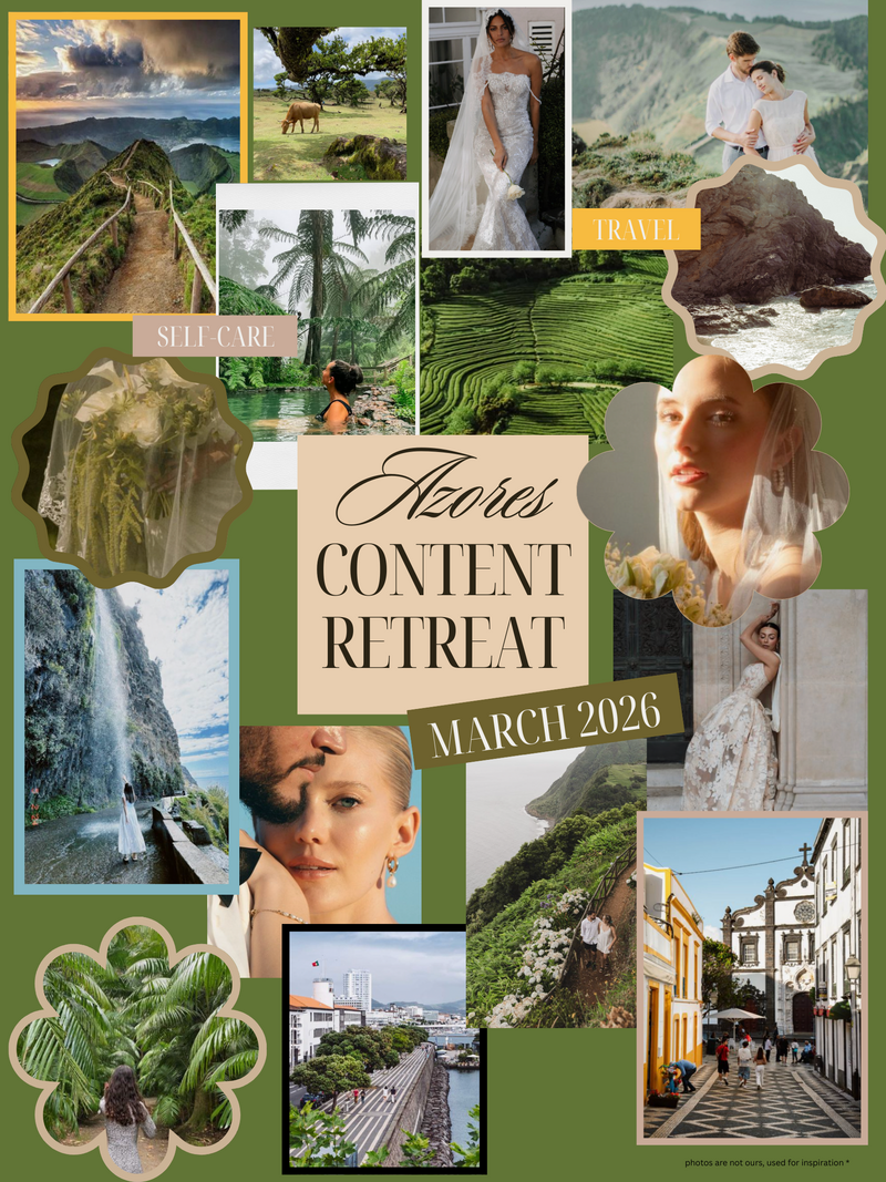 Hosted by Sarah Lord of Makeup by Sarah Lord, who has been creating styled content days since 2016. With experience hosting events throughout New England and in inspiring destinations like Charleston, SC and Sedona, Arizona, Sarah brings her passion for combining vendors' creativity with photographers, videographers, and content creators to capture all of the magic. This retreat is the perfect fusion of her expertise and Glam Azores' intimate knowledge of these breathtaking islands.